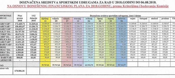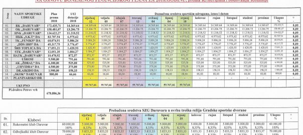 U prilogu Vam je tabela raspodjele financijskih sredstava prema Financijskom planu za 2018. godinu, raspodjela je ažurirana u skladu sa planom i izvještajem za prvih šest mjeseci rada
