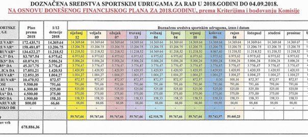 U prilogu Vam je tabela raspodjele financijskih sredstava prema ...