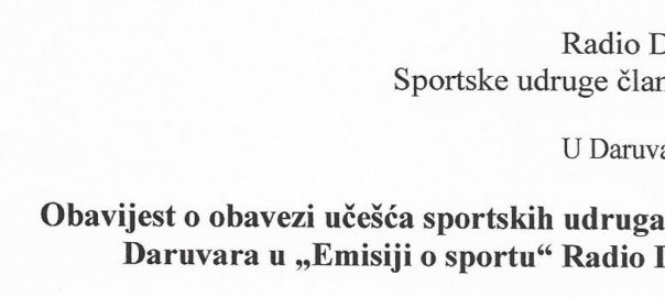 Učešće sportskih udruga članica SZG Daruvara u emisijama RDa