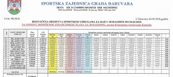 Ispunjenje raspodjele sredstava od strane Grada Daruvara ...
